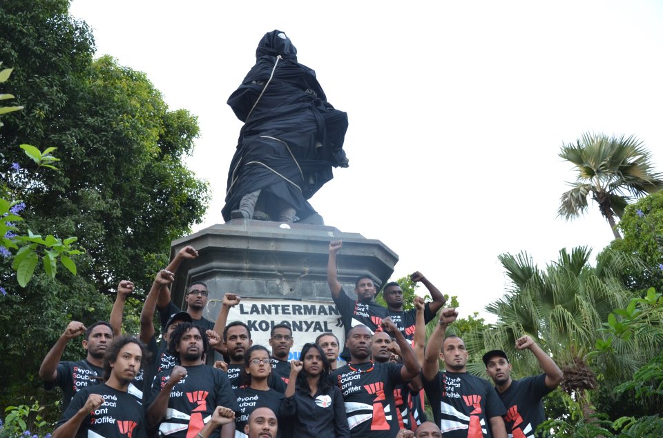 Le 5 Novembre 2011, les membres du RSKP ( Réyoné Soubat Kont Profitèr ) ont décidé de faire un " Lanterman Kolonyal " en allant mettre la Statut de Mahé de Labourdonnais sous un drap noir.